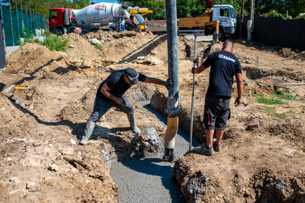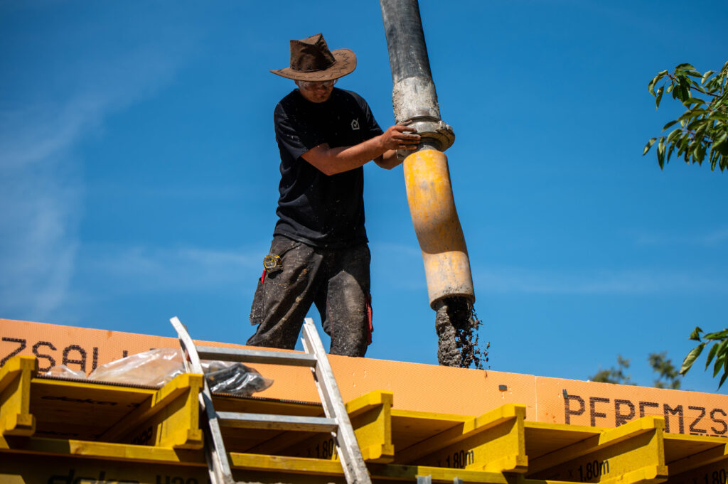Az emeleti falazás után a koszorú elkészítése következik. A koszorú egy vasbeton gyűrű, ami az emeleti fal tetején fut körbe. Ez statikailag összefogja az egész épületet, és átadja a terhelést a falaknak. Fontos, hogy a koszorú vasalása szakszerű legyen – ez biztosítja az épület stabilitását szélsőséges időjárás esetén is.
